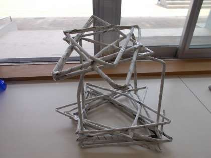 今日は、4年生の仲間がつくった作品を紹介します。この作品、なんと全部新聞紙でできています。新聞紙を丸めて棒にすると、このような素敵な作品ができるのですね。
