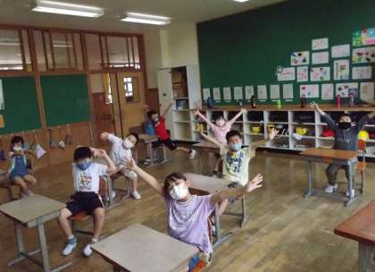 心待ちにしていた学校再開から2日目。集合記念に写真を撮ろう!と、距離をきちんととりながらも、元気いっぱいポーズを決めて写真撮影をしました。手洗い・うがいの徹底や、距離を保つことなど、新しい学校生活様式に慣れるよう、毎日がんばっています。