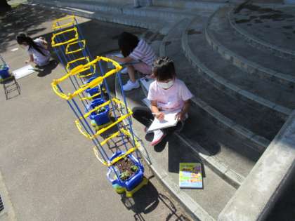 1年生は、生活科の時間にあさがおの観察をしました。全員のあさがおの芽が顔を出し、お互いのあさがおを見比べながら観察する子供たちの姿が印象的でした。もう本葉が出てきているものもあり、つるが伸びてきたら肥料をまく予定です。定期的に観察を行い、成長を記録していきます。