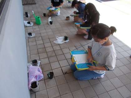 今週の理科では、外に出て、自然の中の植物や動物を見つける学習と、ヘチマの観察を行いました。