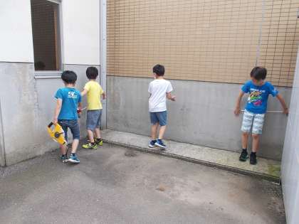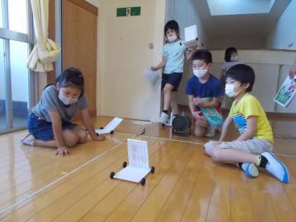 3年生は算数の時間に巻尺を使って長い物の長さを測りました。「校舎の周りは何メートルあるの」という話になり、全員で協力して校舎の周りの長さを測りました。理科の「風やゴムのはたらき」や体育科の「走り幅跳び」でも巻尺を使い、正確に測れるようになってきました。