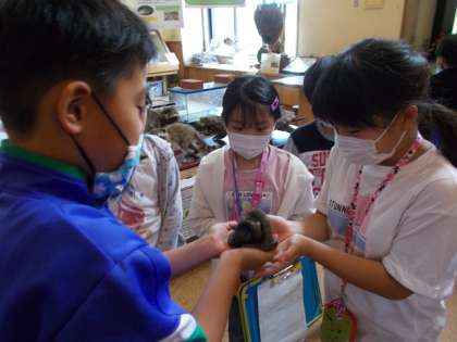 モリアオガエルの卵を見たり、様々なトンボを捕まえたり、施設の見学をしたりと、いろいろな生き物や植物とふれ合いました。