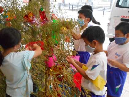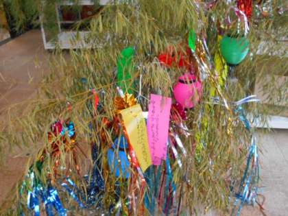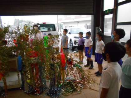 音川交流センターの方が用意して下さった立派な竹に、短冊を飾りに行きました。色とりどりの短冊に思いを込めて、丁寧に飾り付けました。願いが叶うといいですね。