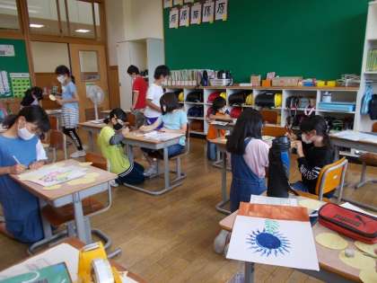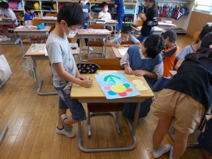 前回同様、友達の作品を見て「いいねの実」を付けました。その後は、自分に届いたいいねの実をうれしそうに見る子供が多く、温かい時間となりました。