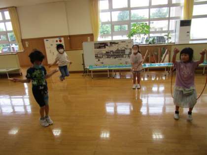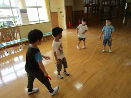 最近、2年生がなわとびで遊んでいるのを見た1年生のブームは、なわとびです。短縄も長縄も両方取り組む子供たちの姿が見られます。技ができたときは、「先生、見て見て!」と声をかけてくれました。仲間と声をかけ合って仲良く遊んでいました。