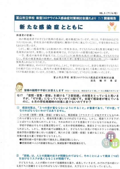 富山市立学校 新型コロナウイルス感染症対策検討会議だよりVOL.5
