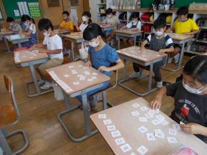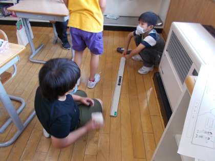 算数では、1.435mの長さはどのくらいか、みんなで知恵を出し合って考えていました。