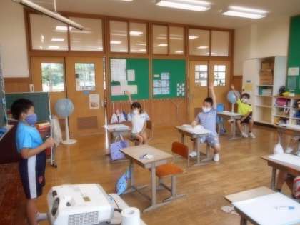 出題者が思い描いた物は何かを、質問をしながら当てていくという「わたしはだれでしょう」ゲームをしました。休み時間や帰りの会等、ちょっとした時間を見付けて、みんなで仲良く楽しんでいます。