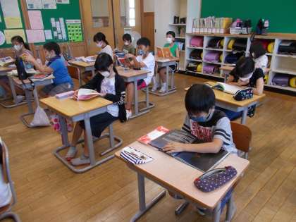 4年生は国語科で「ランドセルは海をこえて」というノンフィクションの作品に出合いました。そこで、今日は図書室に行って、自分の読みたいノンフィクション作品を選んで、読書をしました。あまりふれたことのないジャンルの本を熱心に読んでいました。