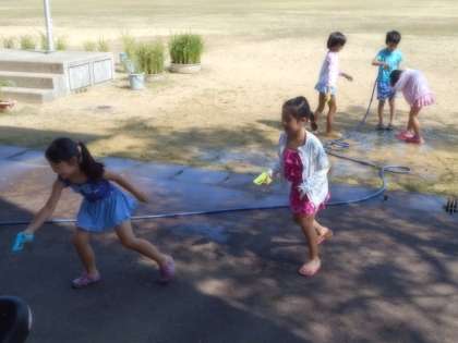 1年生は、生活科の時間に水遊びや土遊びをしました。以前から計画していた遊びや、水鉄砲やシャボン玉など、たくさんの遊びをして楽しみました。
