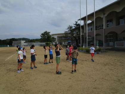 理科の時間に太陽とかげの動き方を調べました。自分たちで作った道具にかげと太陽の位置を書き込みました。
