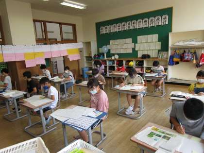 自分たちが書いた意見文を読み合い、感想や分かりやすいところ等を伝え合いました。