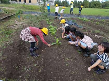 3年生は総合的な学習の時間に大かぶの世話をしました。根元をよく見ると白くなっていました。これが大きく育っていくのだと、子供たちは楽しみにしています。