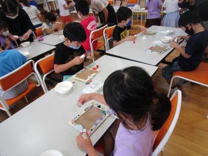 1年生は、ものづくり教室で、写真立ての枠にタイルを貼り付けるタイルアートをしました。講師の先生方の話をよく聞いて、どんな飾りにしようか考えながら、楽しんで活動していました。