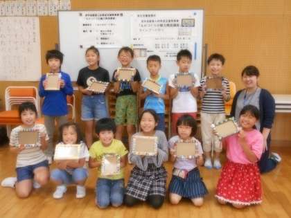 職人の方たちに教えていただきながらタイルアートをしました。タイルの色や形の組み合わせや置き方にこだわってオリジナルの写真立てができました。丁寧にタイルを貼る姿は、まるで職人さんのようでした。