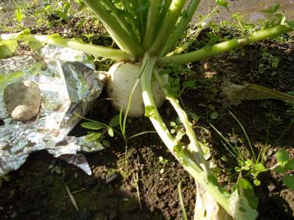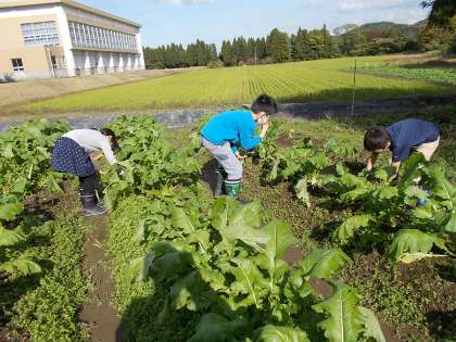 3年生が育てている大かぶの実がどんどん丸く、大きくなってきました。子供たちは嬉しそうに草むしりや、枯れた葉の処理をしていました。収穫がより一層楽しみになりました。