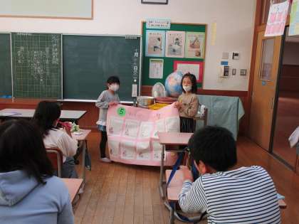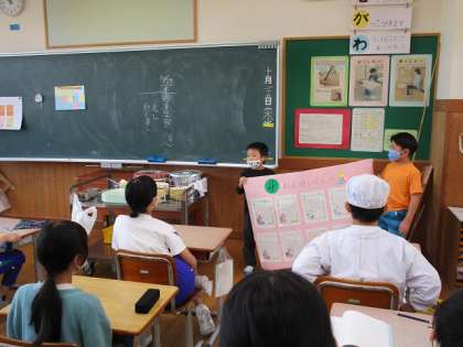 校内発表会の後、各学年にお手紙を書きました。「声が大きくて上手だったよ」「踊りがそろっていてすごかったよ」など、1年生なりに感想を伝えることができました。お昼の時間に届けに行き、満足そうな子供たちです。