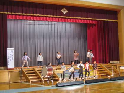 3年生は大切に育てている大かぶの育て方を創作劇で発表しました。子どもたちは、地域の方に教えていただいたことや自分たちの経験を台詞や歌声で元気よく伝えることができました。