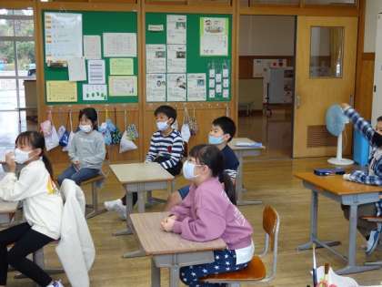 昼休みに、給食係が「食べ物クイズ」を行いました。キュウリだと思ったら、バナナだったり、ミカンだと思ったらトマトだったり、不思議な食べ物の登場に、びっくり。思いがけない食べ物の変身をみんなで楽しみました。