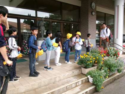 10月7日(月)古里小学校と合同で太閤山ランドへ校外学習に行きました。天気予報は雨でした。「晴れたらいいな。」「昨日てるてる坊主作ったよ。」子供たちの願いが通じたのか活動中は晴れ、芝生でゲームなどをして楽しみました。