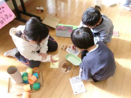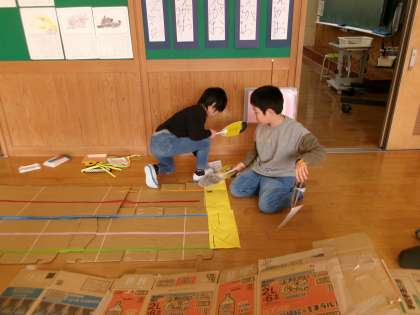 生活科の学習で、自分のおもちゃを作ったり遊んだりして1.2年生で楽しみました。