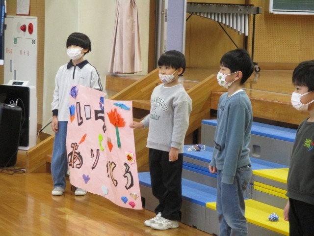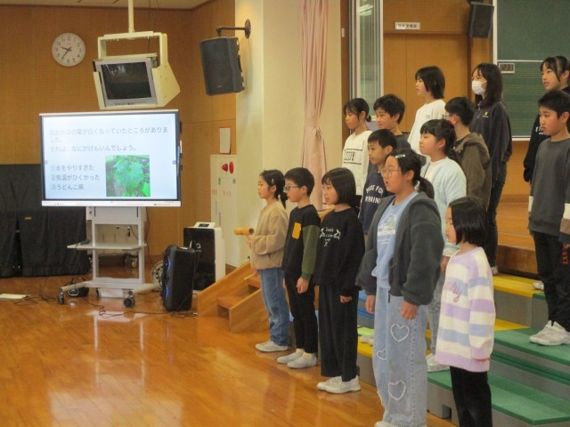 日頃お世話になっている地域の方々を招待しました。子供たちは、感謝の気持ちを伝えるためにプレゼントを渡したり学習したことをクイズ形式にして発表したりしました。