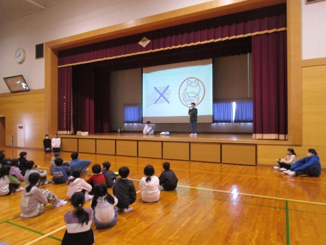 全校児童の体力向上を願って、運動集会(ソフトボール投げ)を実施しました。最高学年らしく堂々と活動に取り組む姿が見られました。