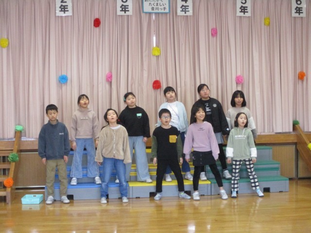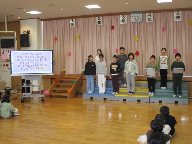 ダンスや替え歌、クイズと全校で楽しみました。
