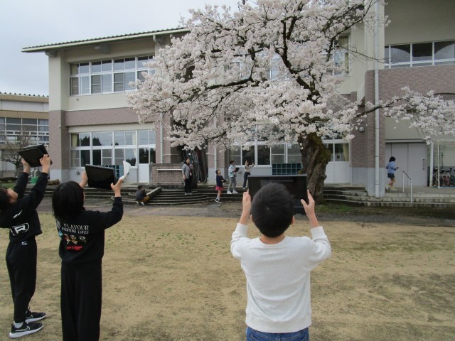 桜の観察をしました。クロムブックを持ってグラウンドに出て、観察しやすい桜の花を選び、写真を撮りました。教室に戻った後、撮った写真を見返して、花びらの数や形、色などをよく観察しながらスケッチをしました。