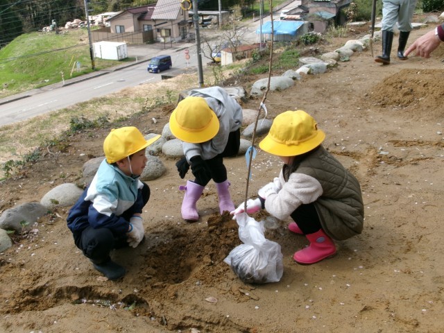 子供たちは自分たちで桜の苗木を植えたことを「うれしかった」と話していました。