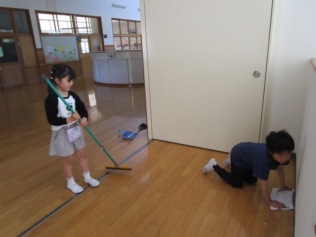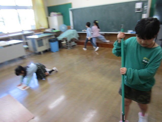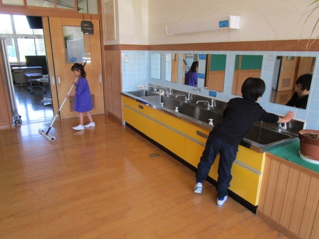 清掃の仕方を一緒に確かめたり、まだ汚れているところがないか確かめたりして、みんなで使う学校をきれいにしています。