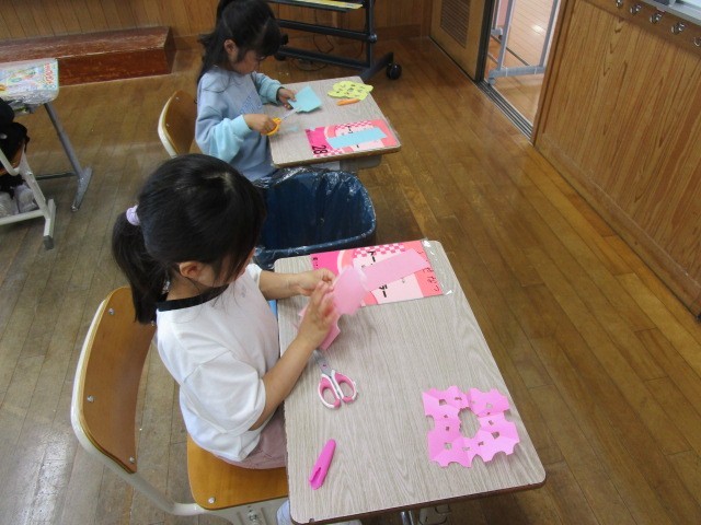 いろいろな形に切れる色紙に、子供たちはおどろき、楽しんでいました。