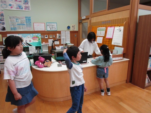 休み時間は、学年関係なく、大縄で遊んだり、図書室へ本を選びに行ったりしています。