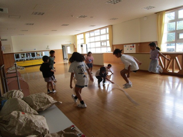 きょうは5年生と一緒になわとびで遊びました。