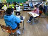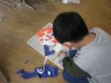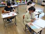 図画工作科で、紙版画に挑戦しています。今日は、動きを付けた型紙に、顔の表情や髪...