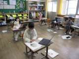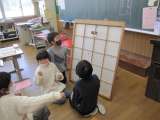 1年生は国語の時間にたぬきの糸車の学習をしています。今日は破れ障子から目を出し...