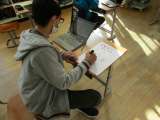 1年生は図工の時間に紙版画を作り始めました。今日は顔を作りました。「自分の顔っ...