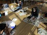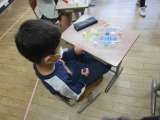 ゴムの力を使って動くおもちゃをつくりました。競走したり、自分のおもちゃのよさを...