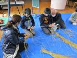 今日、米を収穫した時にとっておいた藁を使って、縄編み体験をしました。子供たちは...