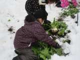 雪が積もる中、9月から育ててきた大かぶを収穫しました。大きな大かぶに育ち、子供...