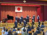 修了証、卒業記念品をいただきました。また、6年間無欠席だった2名を表彰しました...