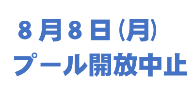 学校プールの管理上の都合で、8月8日(月)のプール開放を中止します。なお、8月...