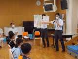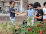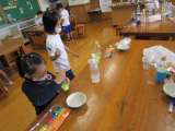 1年生は図画工作科の時間に、絵の具を使って色水を作りました。ペットボトルに絵の...
