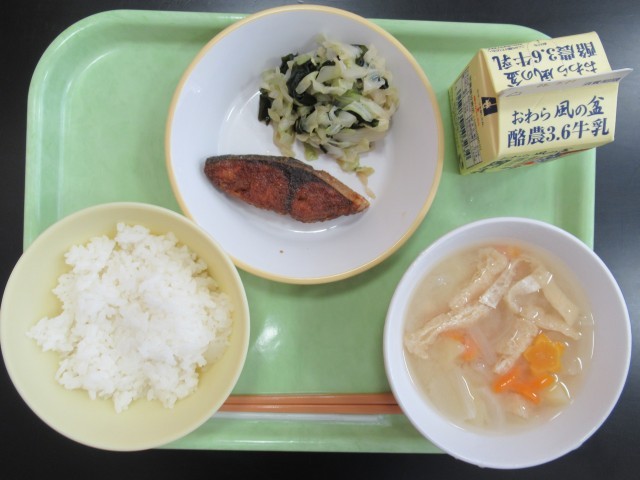 フクラギのかば焼きのたれが香ばしく、白ご飯が進むおいしい味でした。酢の物は、苦手な子供でも食べやすい優しいお酢の味わいでした。血液がサラサラになったような気がします。