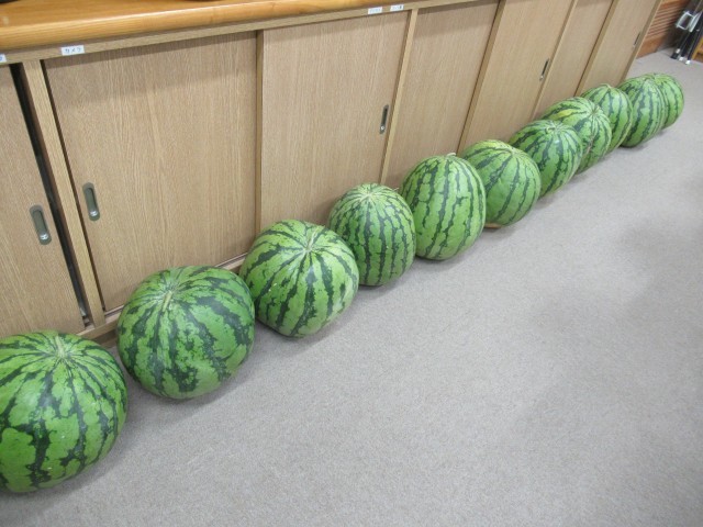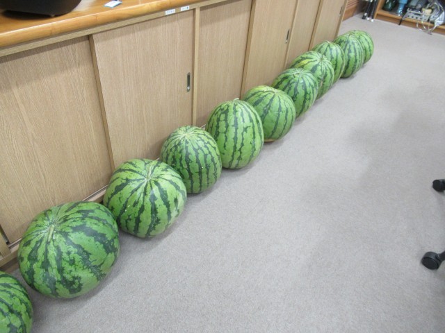 昨日、昨年同様に、12玉もの立派な「朝日スイカ」を頂戴しました。