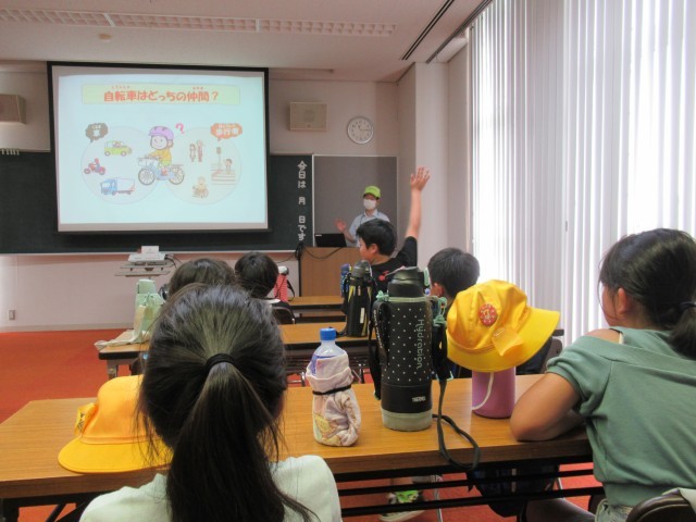 実技練習の後は、館内で安全な自転車乗車についての講義を受けました。