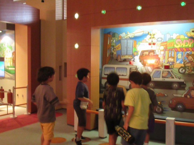 昼食後、交通博物館内の展示を見学しました。帰りは、にわか雨が降ってきたので、指導員の方が運転教育センター内を通ってバス停まで案内してくださいました。