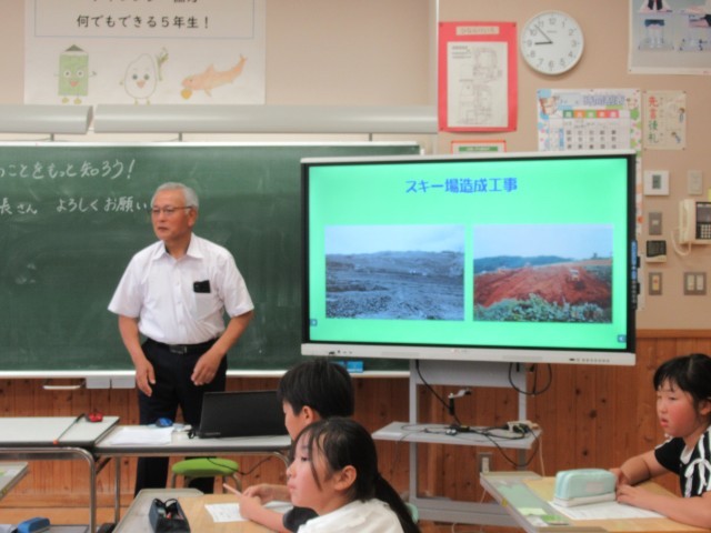 昨日、5年生は、自治振興会長さんを教室にお招きして、山田の歴史について学びました。