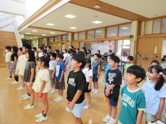 子供たちには、1学期を振り返ること、33日間の長い夏休みに、日ごろできなかったことに挑戦し、今しか味わえない小学校生活を満喫してほしいことを話しました。