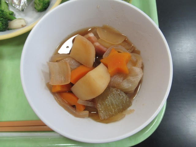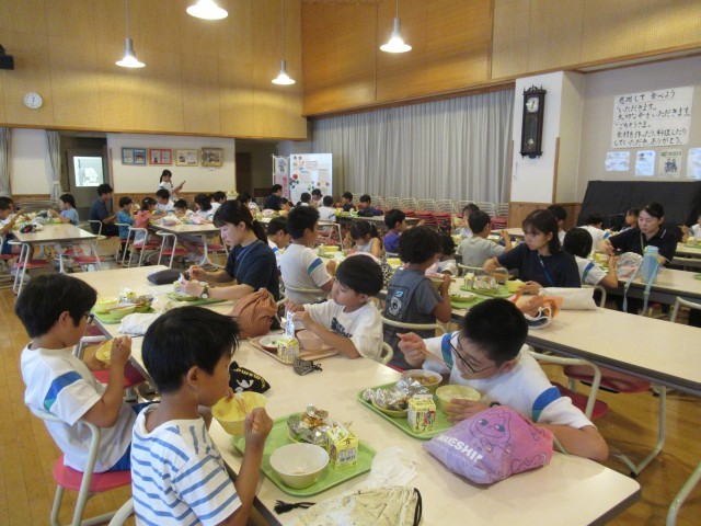午前中、いっぱい活動しておなかペコペコの子供たちにとって、久しぶりの給食。ランチルームに集まりみんなで食べる給食は、さらにおいしさが増します。幸せな時間です。